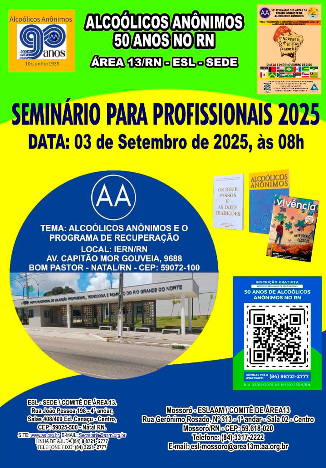 3 setembro 2027 às 08:00 - 5 setembro 2027 às 17:00 21ª Convenção Nacional de Alcoólicos Anônimos do Brasil Acesse o site da Convenção